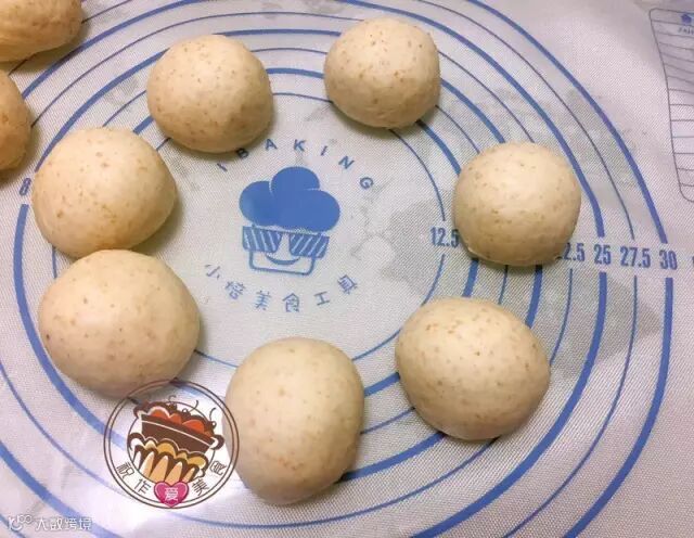4.将发酵后的面团分割成50g一份的小面团,滚圆醒面15分钟。