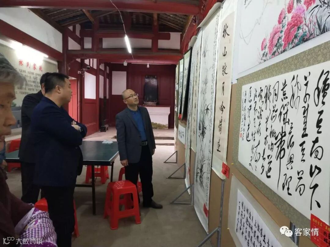 林坊镇主要领导参观草根书画展,倡导”移风易俗,你我同行“