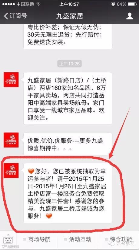 亲们请看清楚前面的中奖须知,不明白的可以咨询后台,我们会及时回复,兑奖一律凭后台发出的中奖通知至九盛家居土桥店领奖!