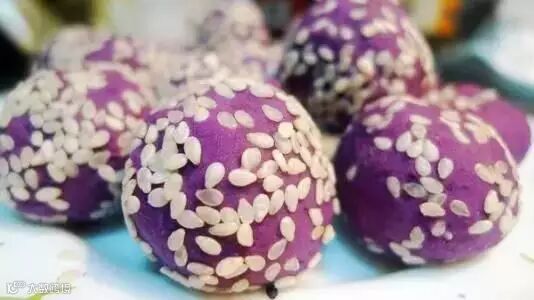 1、紫薯洗净,隔水蒸熟,去皮、切碎、碾成泥