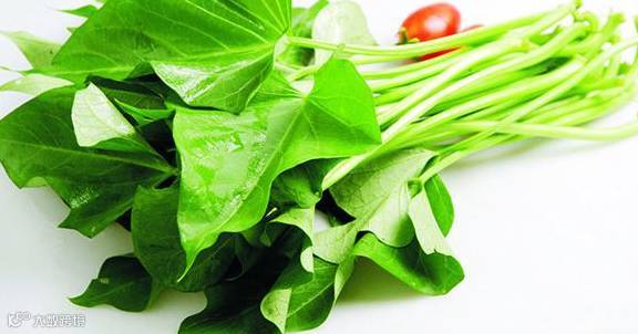 红薯叶子:提高免疫力、预防便秘有一定疗效。将红薯叶(记得是纯叶子、叶子上带的小藤也不要),加入5、6瓣蒜,蒜切小丁状,先在油锅里炸出味道,但别糊了,再加入红薯叶,炒出来的味道真是非常赞。