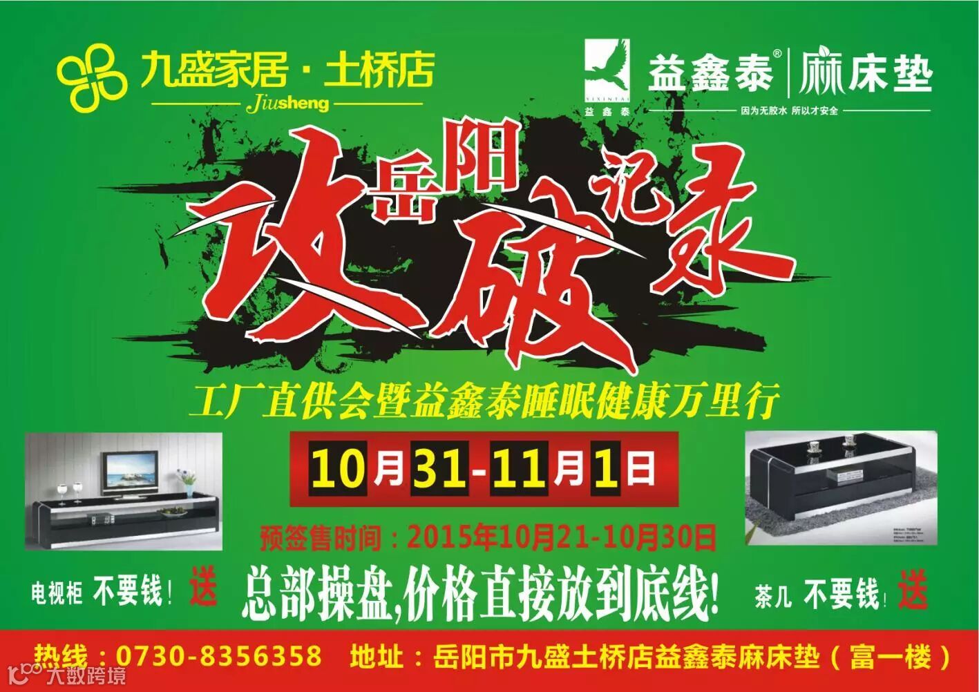 益鑫泰爆破团队强势来袭,由总部操盘,进益鑫泰家居(九盛土桥店)购买商品即可享受最低工厂价格。