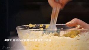 将地瓜泥过筛后和黄油蛋黄酱充分混合