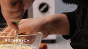 加入80克黄油和50克白砂糖并用打蛋器充分打发