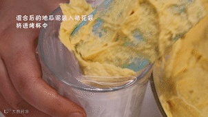 将混合后的地瓜泥装入裱花袋挤进烤杯中
