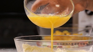 准备两个鸡蛋打散后分三次加入并充分搅拌