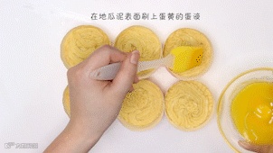 在地瓜泥表面刷上打散的蛋黄液