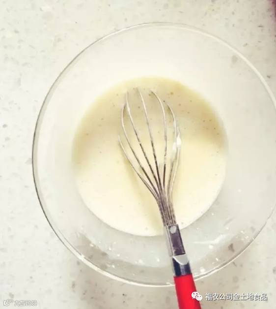 取适量面粉在碗中,先加入纯牛奶后加鸡蛋搅拌均匀。
