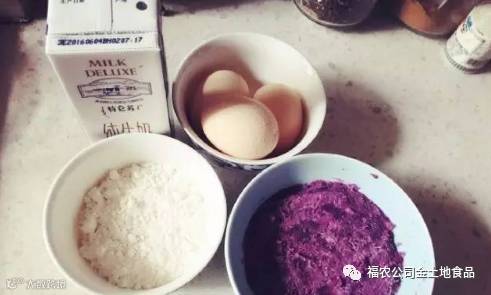 紫薯3个、鸡蛋3个、面粉、纯牛奶、盐