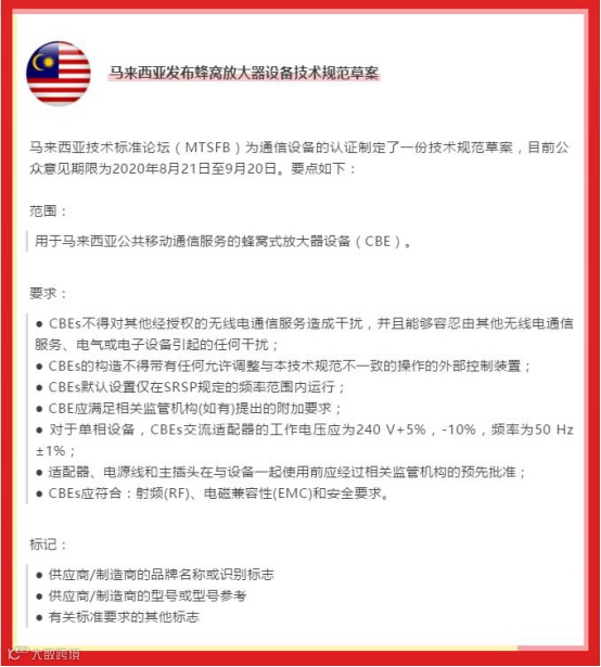 南美市场:ANATEL认证等认证;