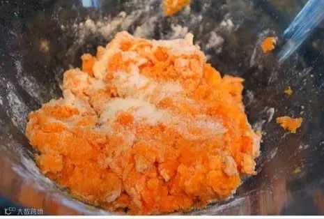 步骤二:红薯蓉中加入面粉、清水和少量白糖揉成面团。