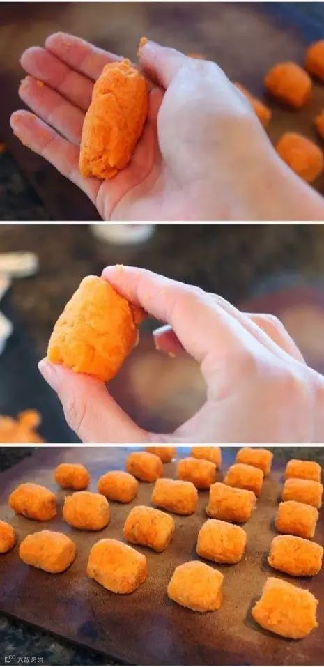 步骤三:用手把红薯蓉面团揉成小丸子备用。