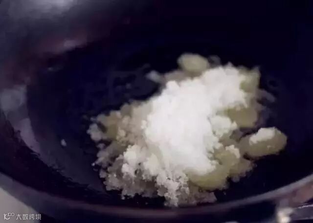 4.原锅加入白糖70g及水2大勺,煮时不要翻动, 待大滚再拿筷子搅。
