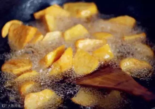 2.入锅中炸到熟,起锅前转大火逼油,这个动作也会让表皮酥脆