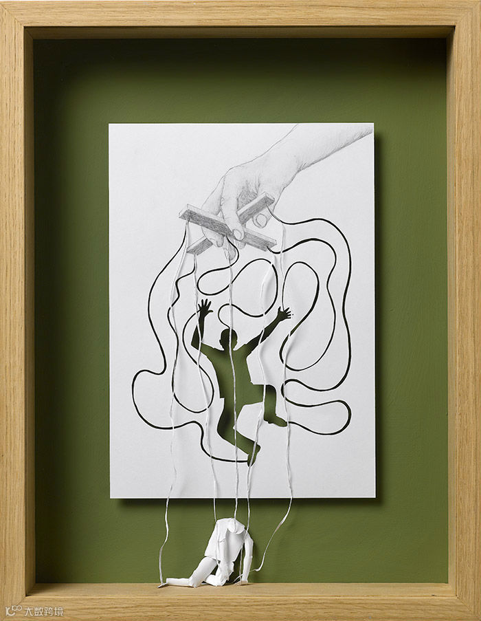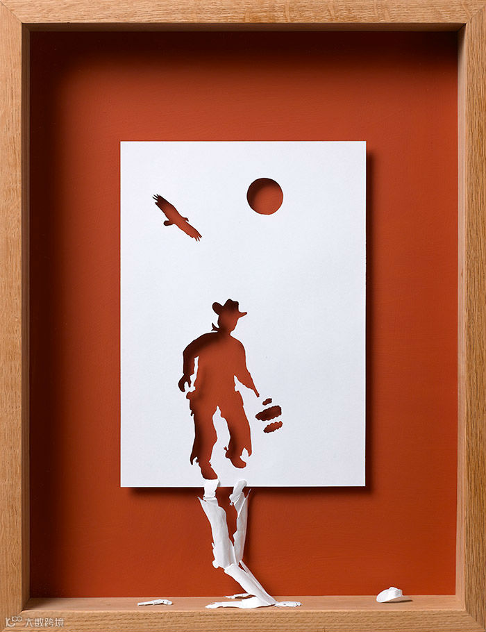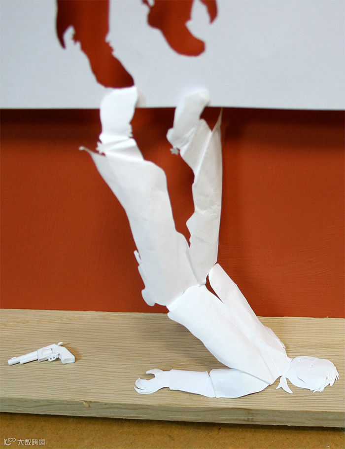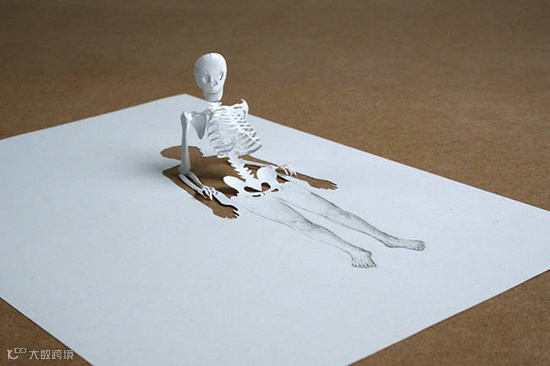 Peter在剪纸与纸张雕塑上的不断探索,让二维的平面A4纸神奇的向立体雕塑转变,骷髅、人影 、建筑等奇思妙想从死气沉沉的纸张上奋力挣脱、跃然而现。