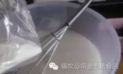 3.慢慢加入牛奶布丁粉,并且一边用打蛋器搅拌