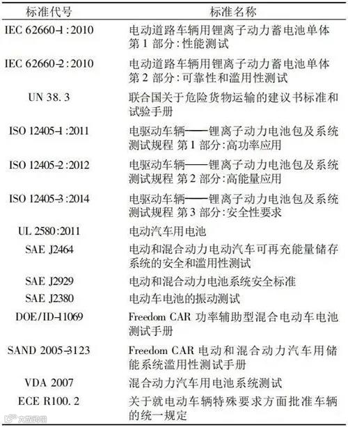 国外动力锂离子电池标准