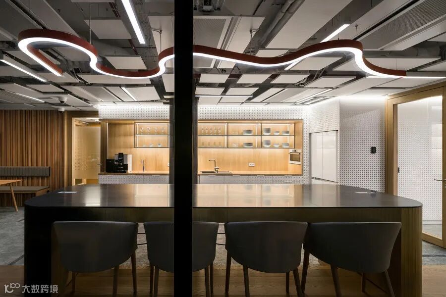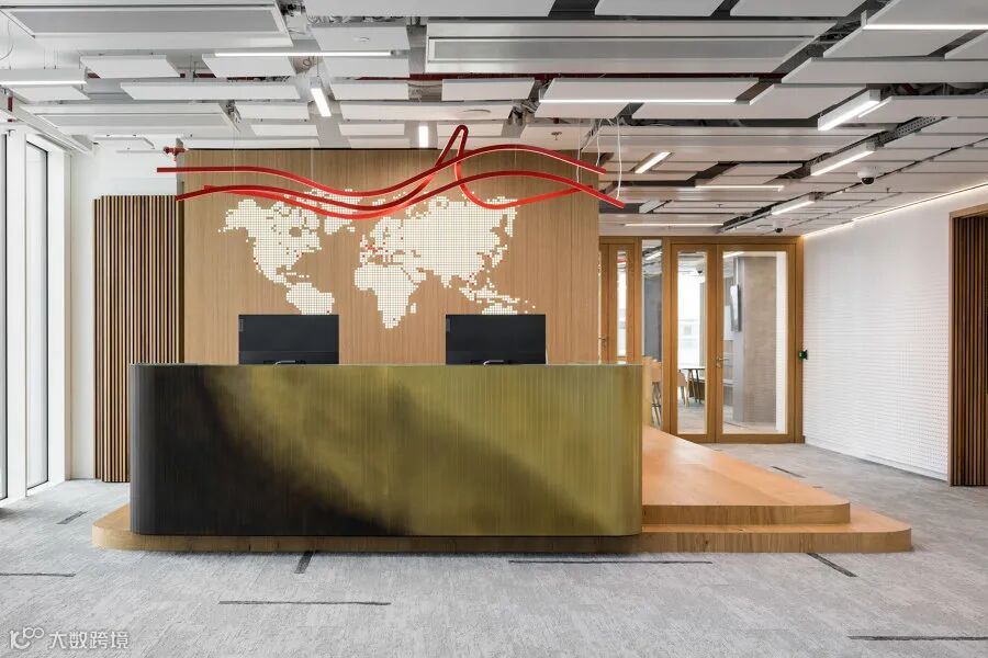 那么在设计中“便利贴”又给REAKTOR带来了什么灵感呢?工作室根据便利贴的主要功能之一——用于基础定位并引导来访者通往私人办公室。最后REAKTOR使用了贯穿整个室内的线性照明灯具,犹如与Allen & Overy在合约书底部笔触鲜明、字迹清晰的签名一般闪闪发光!