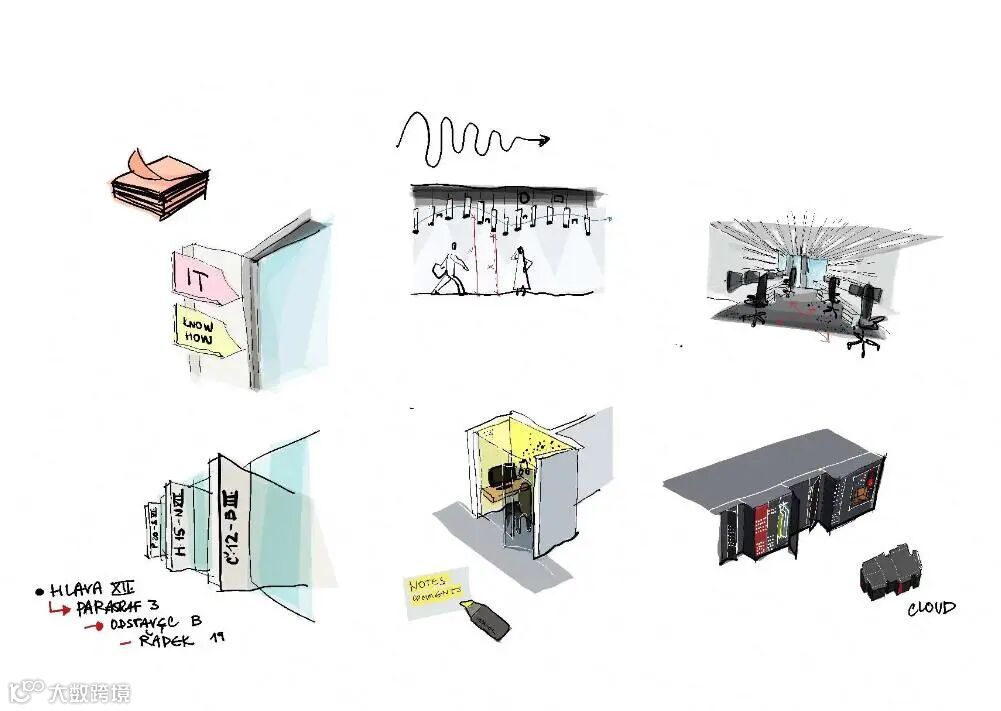 1992年进入捷克共和国,Allen & Overy律师事务所便在业内建立了良好的声誉,在全球各地拥有44个办事处,布拉格办事处现已完全融入事务所的国际网络中。现如今,“法律实践”的工作有一部分通常是为创业项目、大型收购或小型 IT改革提供复杂的咨询服务。而Allen & Overy律师事务做出了一个非常规的决定,即放弃布拉格市中心的“优质”地段。于是REAKTOR工作室在设计方案中定义了四个关键点。首先,公司的国际部与本土专业知识都将进入云端。其次,所有人每天都要踏上工作的旅程,需要进入文档页面和复杂的流程。第三,“法律”对很多人来说意味着结构,所包含的章程、条款和项目具有内在的逻辑,相互补充且制约。最后是一个签名,犹如旅程尽头的一盏明灯,也是此次方案的第四个关键点。