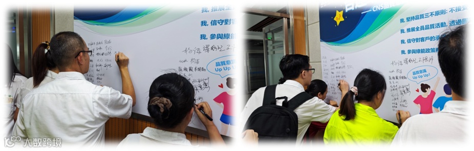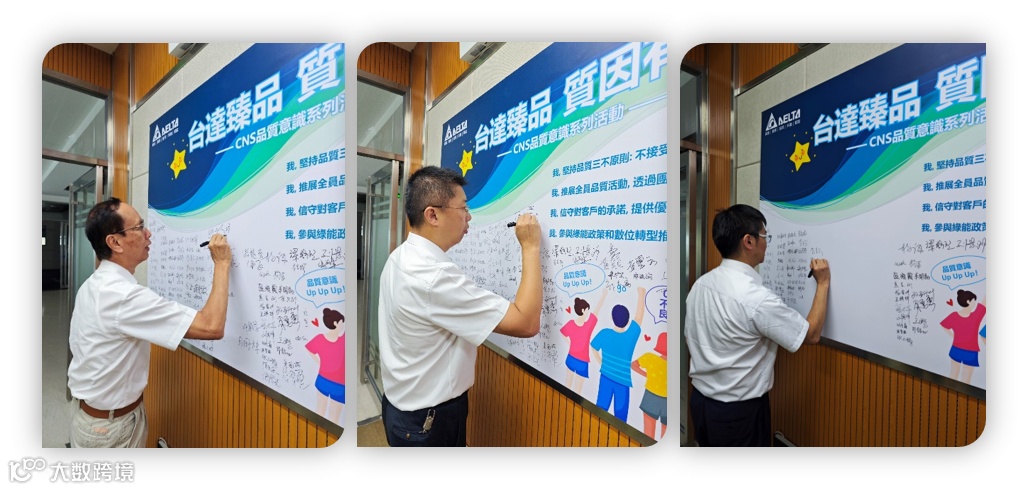 簽名墻上的每一個簽名, 都代表著一份對台達獨特的情感, 一份提升品質意識的決心, 一份提高產品品質的信念。