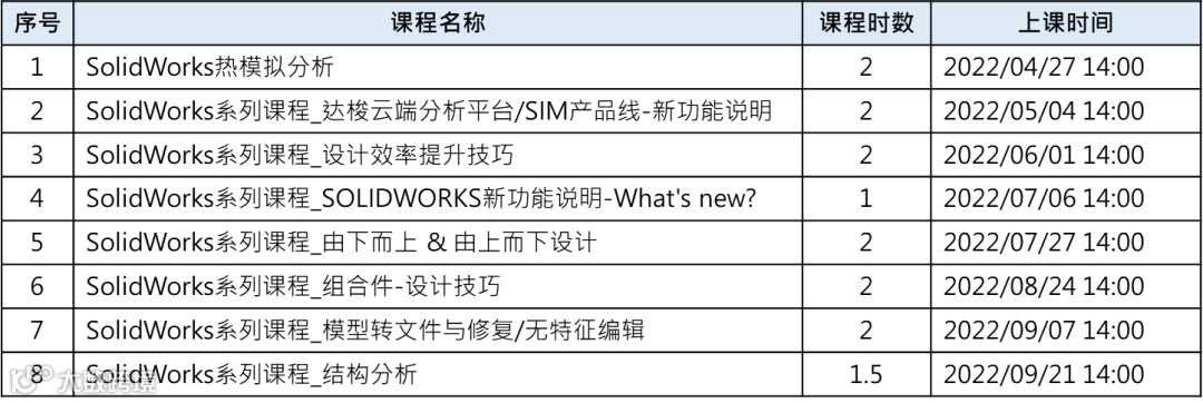 从5月份开始举办以下一系SolidWorks软件相关线上课程,有使用该软件或对此有兴趣的同仁可以报名参加!点我报名!