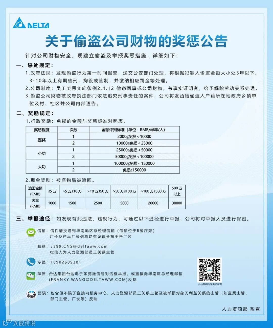 关于偷盗公司财物的奖惩公告