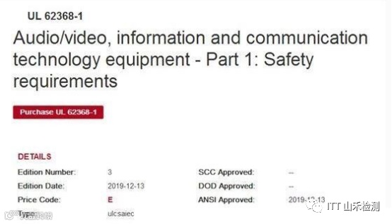 UL 62368-1 Edition 3 于2019年12月13日正式发布,本标准依据IEC 62368-1:2018,标准主题摘要如下:
