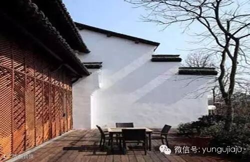 江南会所设计的另一个观点,艾未未为仿古建筑试穿了一身新衣——不仅为屋面做了隔热层,还为所有的老柱子都裹上了一层厚厚的黑色漆膜。在室内的界面考虑上,艾未未似乎特别不能容忍“老宅”原有“肌肤”的老化和陈旧。艾未未在“仿古新做”上,索性将“新做”做的彻底些。所有的6个界面,重则,浓妆淡抹。天,吊了顶;地,铺地板,包括庭院的天井和路面都铺设较新的地材。轻则,墙面除木结构框架保留外都抹成了白色。加上新添置崭新的仿中式家具、窗帘和灯光的配饰,人们似乎再也无法从岁月的沧桑体验、辨认它本来的历史风貌。由于遗留老家具的短缺和收藏太少,江南会所“新做”无意中大于“仿古”的历史是艺术家心路历程的一个“缩影”,新和旧在度的把握上除不确定的因素外,艾未未考虑更多的是速战速决。这似乎成了艾未未心中永远的遗憾,也成了人们争议最多的地方。按甲方的观点:不论怎么说,至少在仿古建筑中,你艾未未得给我们江南会所留下一点“老宅”的历史原貌,哪怕是一根龟裂的柱子,一堵老墙,仿古保留部分和创新观念在此发生了碰撞。