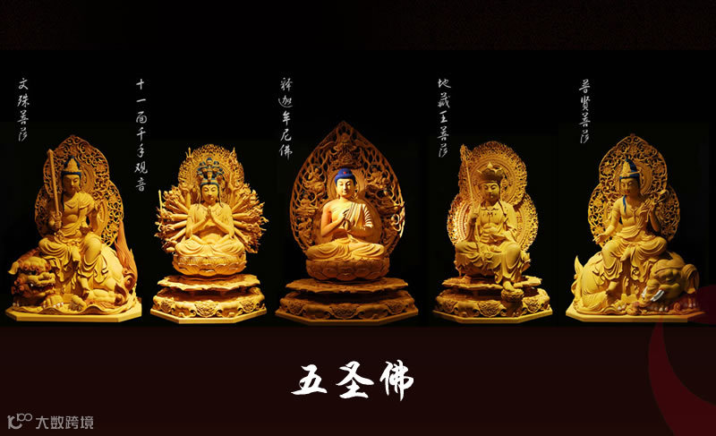 释迦牟尼佛、观世音菩萨、地藏王菩萨、文殊菩萨与普贤菩萨,因为各自美好完满的功德与品性,被赞誉为“五圣佛”,是与我们这个世界上的众生最为有缘的五尊诸佛菩萨。