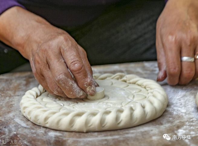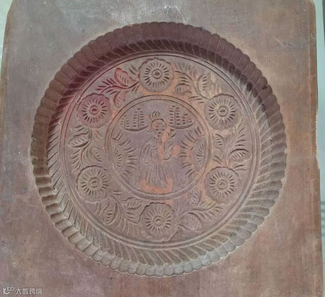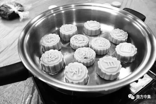 做到这里只是完成了一半,接下来则是再取些面粉,和好面,擀成皮,皮要厚,不能薄,否则包不住还容易烂。然后把馅儿包进来,做成一个面团,它的大小要根据做月饼的模子来。和的面要硬,不能太软,软则月饼易走形。最后把做好的面团放进模子里,上下一压,就成了。这模子上雕刻着花朵的图案,它的样子我早已记不清,只记得很好看。
