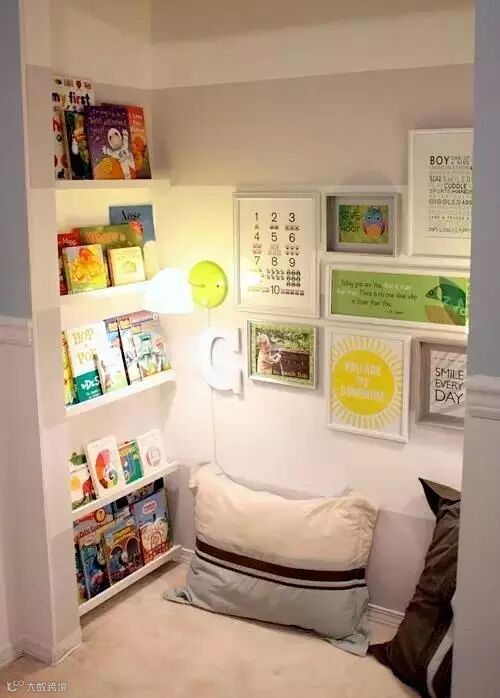 每个妈妈都希望孩子能够爱上阅读,在家里布置一个温馨的阅读区域,是孩子爱上书的第一站!而妈妈们不一定非要为孩子准备完整的书房,只要一个精致小巧的角落,就能让孩子们爱上阅读!