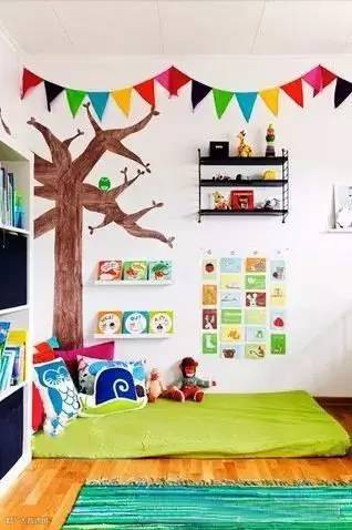 只需要一面墙壁,或两面墙的交界处,就能打造成书架,放满孩子喜欢的书,既最大程度的节省了空间,又简洁整齐,美观实用。