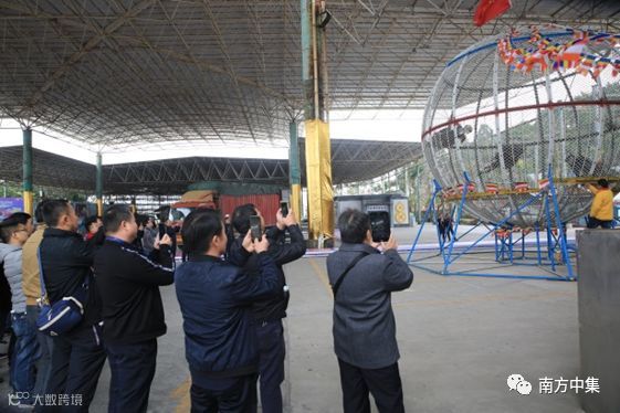 入观音山大门后,我们来到观音山会展中心,观看了一场速度与激情完美结合的笼中飞车特技表演节目。在不到6米宽的空中圆形铁笼内,只见3辆摩托车不停地互相追逐、上下翻飞、飞檐走壁,各种高难度动作的飞车表演,给我们带来了一场酣畅淋漓的视觉盛宴,赢得了大家一阵又一阵的尖叫声、喝彩声和掌声。表演结束后,大家纷纷与飞车特技演员合影留念。