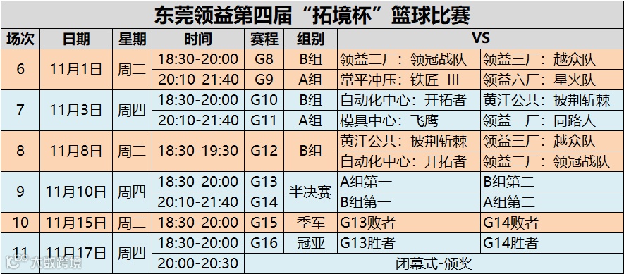 赛事预告