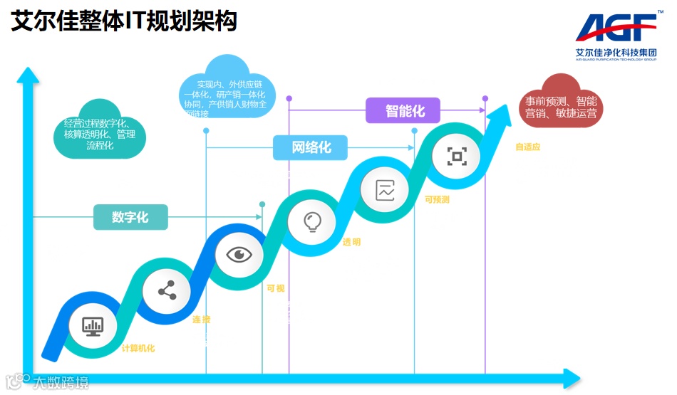 艾尔佳整体IT规划架构将以数字化、网络化和智能化为核心,以提升企业的管理效率和竞争力为目标。通过该架构,艾尔佳将实现对信息数据管理的全面数字化,包括企业内部各类数据的电子化、企业知识库的建设等,从而实现信息的高效管理和共享。数字化还将促进生产、销售、服务等各个环节的信息化,实现对业务全流程的数字化管理和智能化支持。