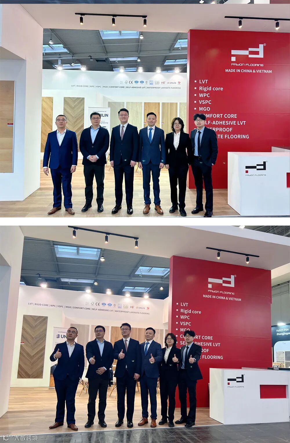 荣登地板总经理姚勇与国际贸易部精锐团队远赴德国,凭借丰富的行业经验,携多款产品及新品—Self-adhesive LVT自粘地板亮相展会现场。