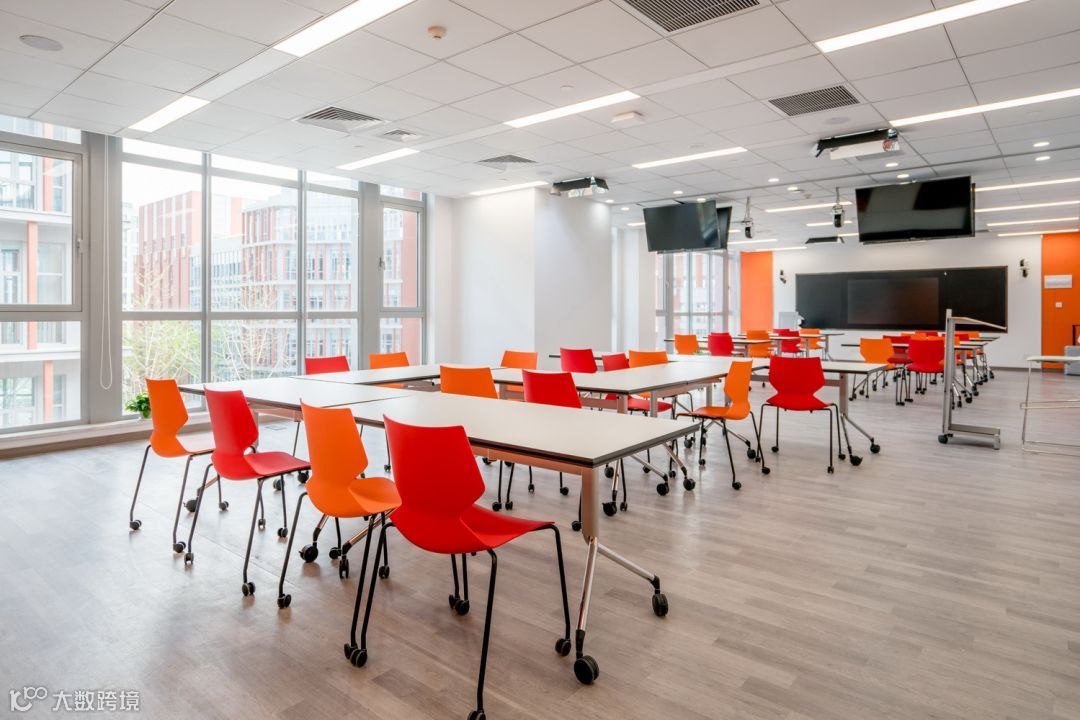 这里有许多社交共享空间,一个餐厅、一间咖啡厅、一个头脑风暴室、小型讨论室、无声房间、活动桌椅等一系列便于学生学习和讨论的设置,旨在激发学生的参与度,促进师生之间的交流互动。