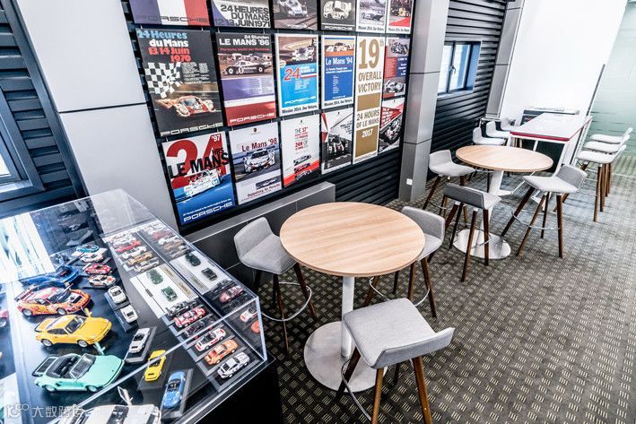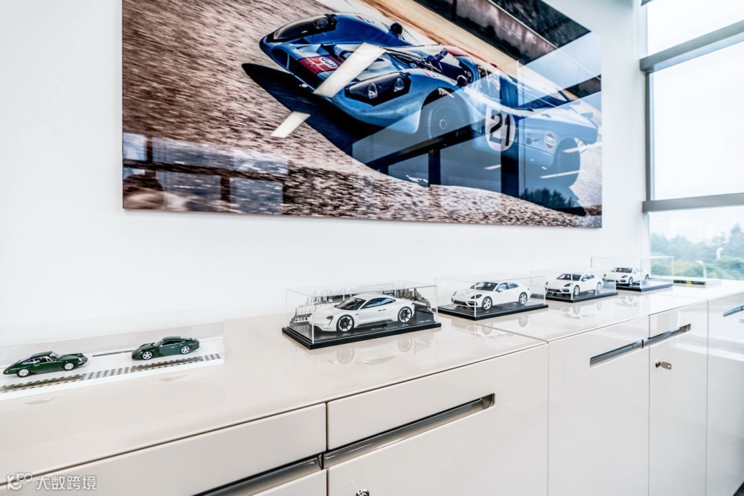 各种车模、海报,可见保时捷人对产品的钟爱和发自内心的引以为傲。