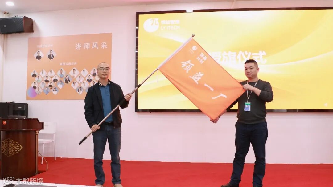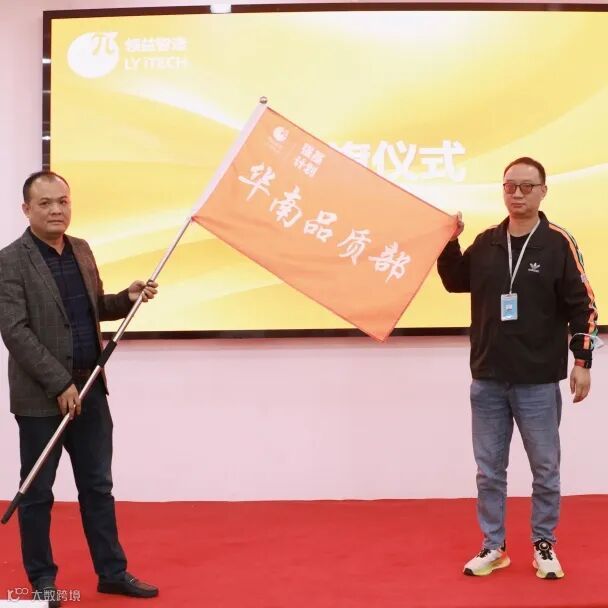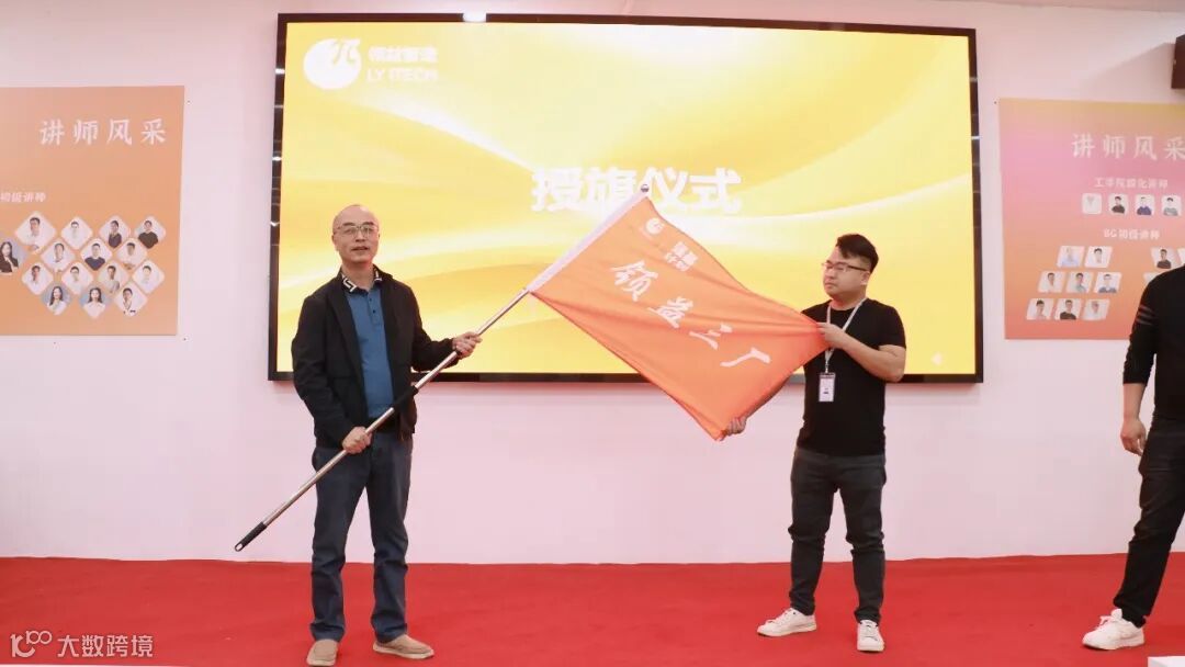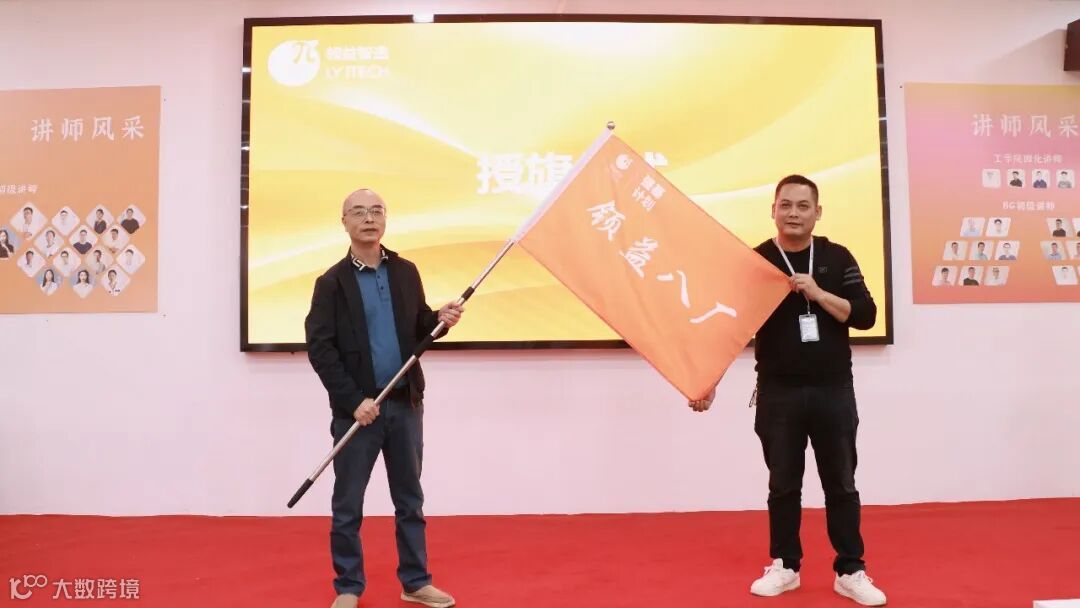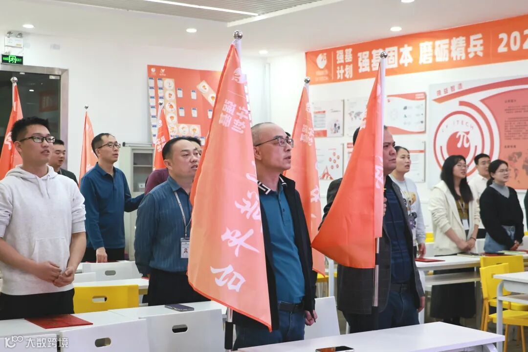 启动会上,举行了一场庄重而富有意义的授旗仪式,由华南制造平台副总监刘可、资源中心副总监张正升,逐一将旗帜授予各部门的代表。随着激昂的歌声,一面面“强基计划”部门旗帜竖起,象征着各参训部门肩负的荣誉与责任,每面旗帜的授予都伴随对项目工作中以旗帜为引领,不断追求卓越,大家携手共进,共同努力,推动项目成功实施。