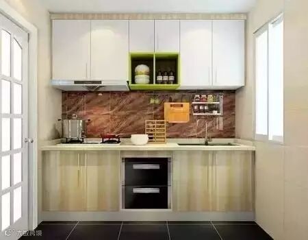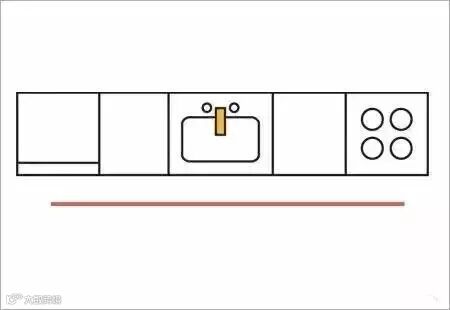 厨房属于面积偏小的狭长型的话,可以选择使用一字型布局。