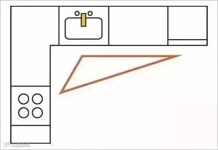 橱柜的布局规划在厨房的装修中很重要,根据厨房空间大小及户型结构,合理选择布局,并尽量遵从“储物区→操作台→水槽→操作台→燃气灶”工作区设计原理进行规划,才能为厨房腾出更多活动空间。
