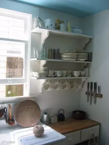 厨房的角落是我们常常会忽略的地方,大家不妨想一想,如果把这里作为备用粮食的地方是不是很好呢?这些地方还可以放置一些小物品用来增添厨房的生活情调。储物柜里物品也要分好类摆放整齐,使用完后也要记得放回原处。厨台上也是一样。