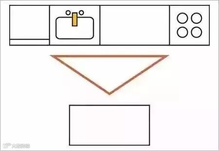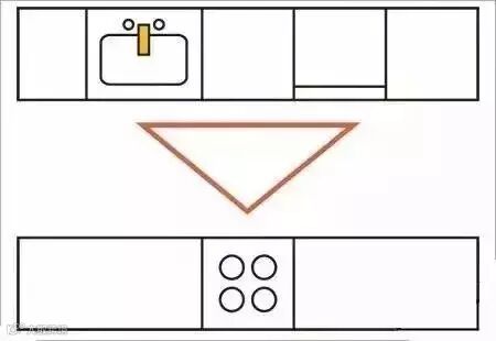 这种布局适用于长形厨房,空间利用率高。