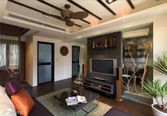 装饰空间:平面开敞流动,多用推拉隔断,空间用线,以及由线构成的面连贯穿插,注重空间的交互性和空间与环境的相互融合。造型多以直线为主,体量因多用天然材料(如竹、藤、麻、石)而虚化了。