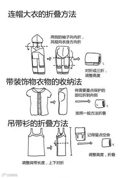 最后总结一下所有衣物的叠法,尤其适合经常出差或旅行的人哦!