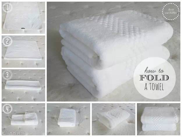 如果你习惯把浴巾挂起来的话,也可以这样叠: