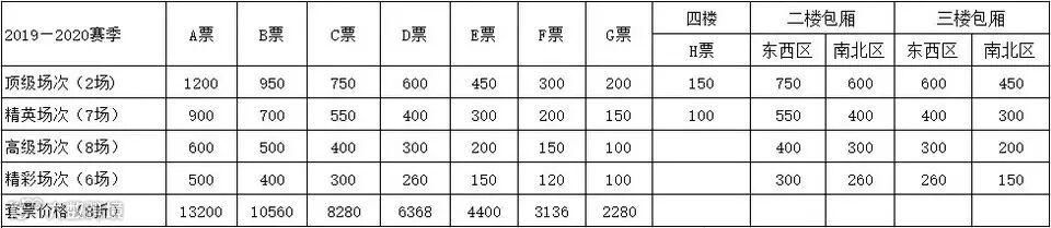 广东东莞银行新赛季主场套票已经开始接受预定,即日起预定套票的球迷朋友可享受票面价8折优惠,票档划分如下: