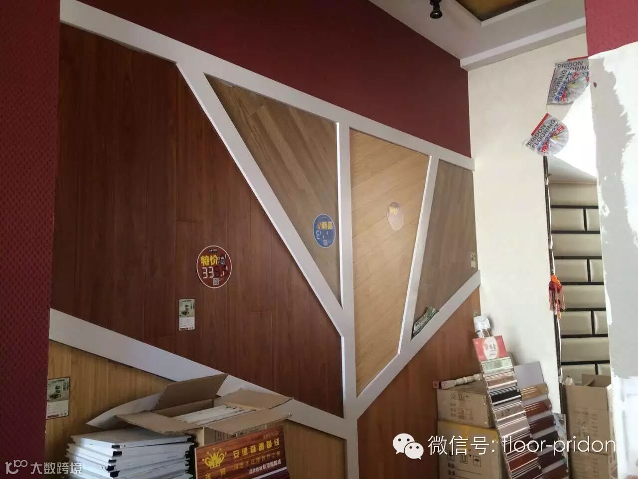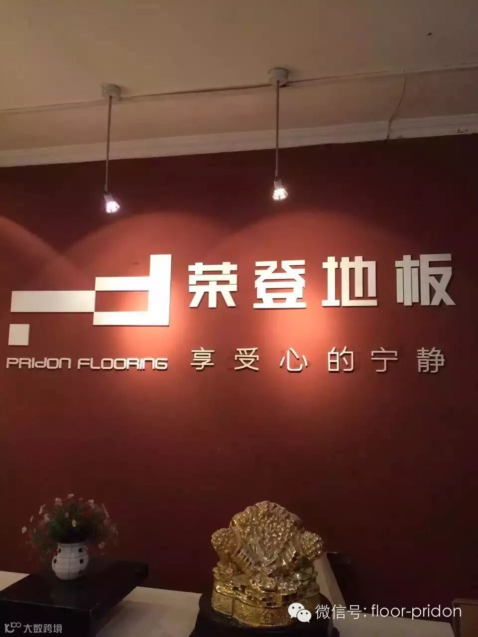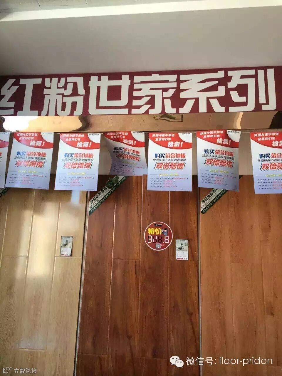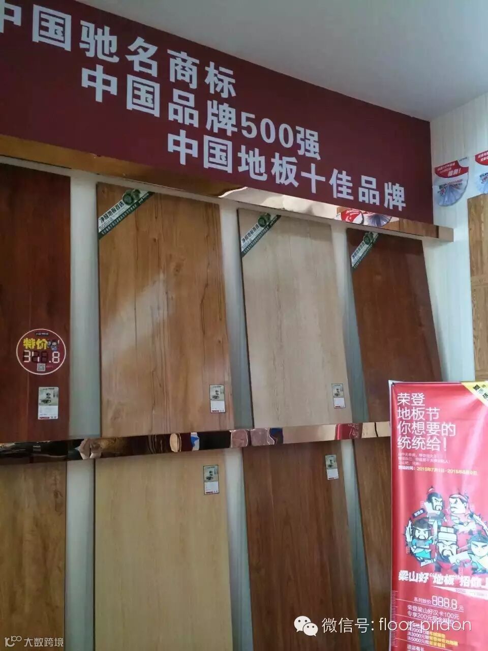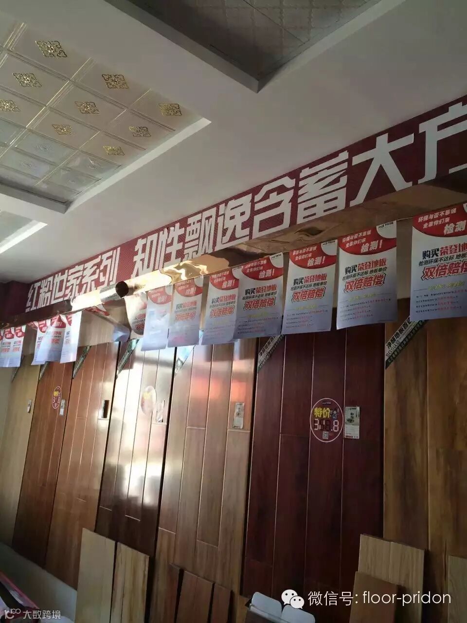 一进店内,就能看到荣登地板的LOGO和标语“享受心的宁静”,背景以红色为主,暖暖的,很温馨,让客户有一种回归心的宁静。