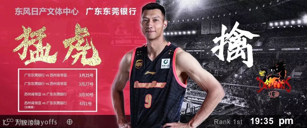根据CBA公司公告,3月28日广东东莞银行VS苏州肯帝亚G2比赛从原来3月28日19:35提前到3月27日19:35在东风日产文体中心开打