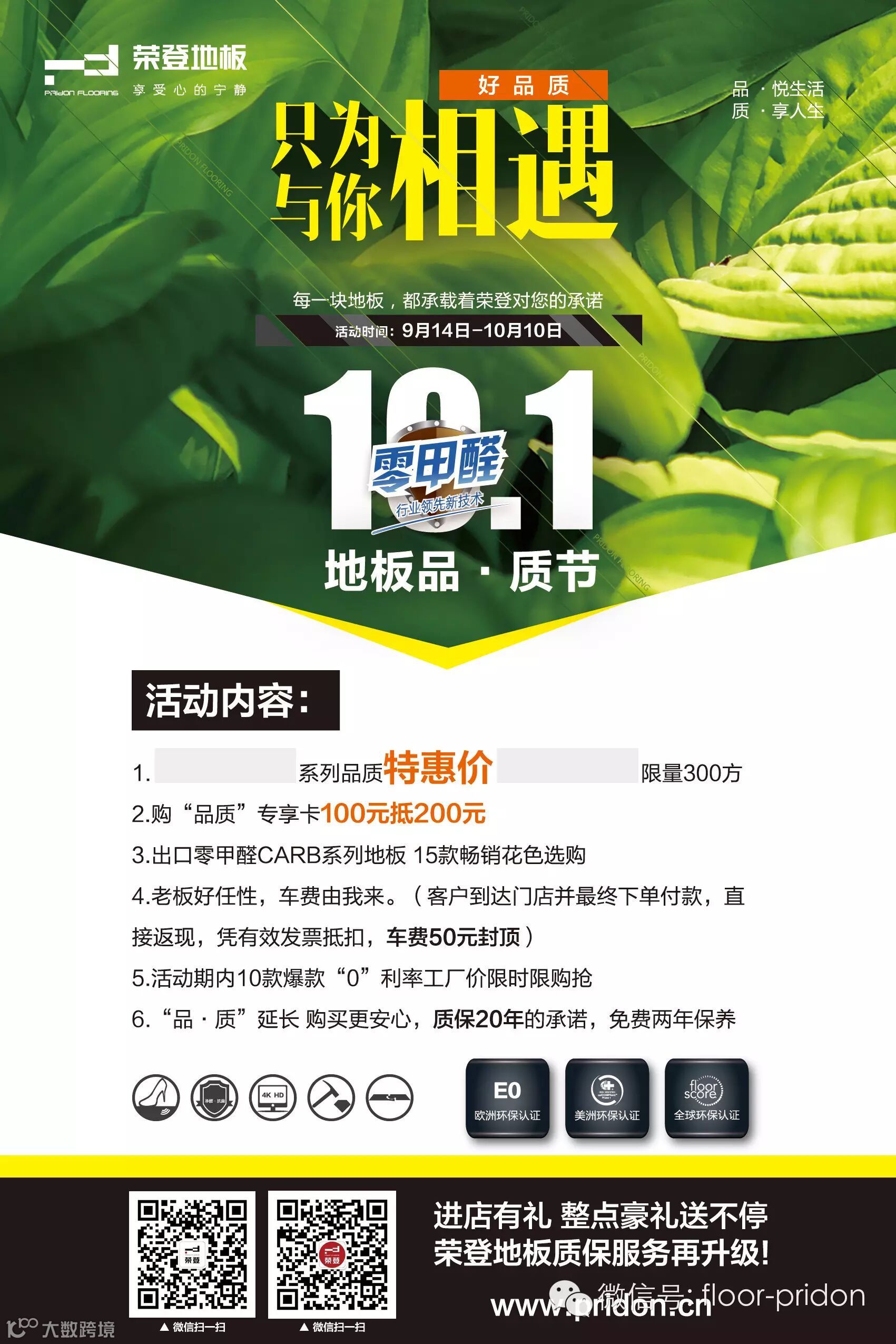 贴在地板的任意一个角,客户一眼就能注意到,增加地板成交量。